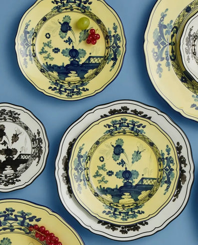 A lush and colorful garden of exotic flowers, an exuberant and uncommon party on the lawn. With the Ginori 1735 Oriente Italiano collection, they wanted to dare, and in daring they established a style that combines two elements of the artistic tradition of Italy - the elegance of the lines from the Antico Doccia Ginori collection and the delicate charm of the Garofano, a floral motif typical of Faenza ceramics and inspired by a fantastical oriental garden - in the explosiveness of the colors that animate the porcelain plates, the cups and all of the other items in the Ginori Oriente Italiano collection.